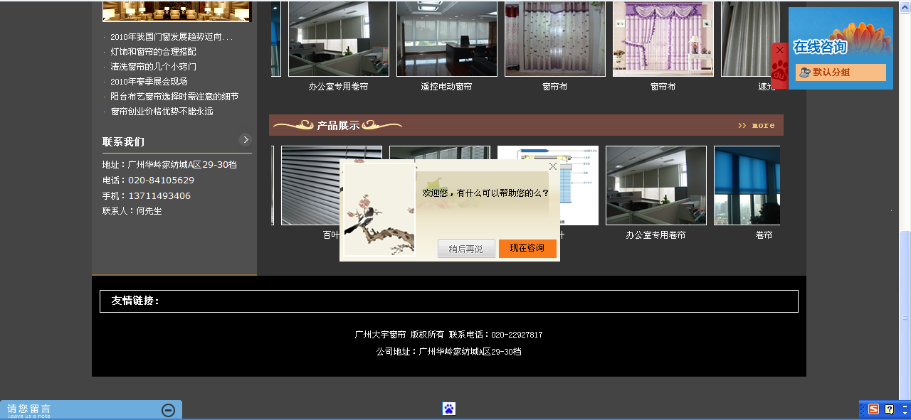 我公司自发现大宇窗帘的侵权行为以来已有近四年,期间我司多次致电大宇窗帘负责人何某,但其总以“不知情”或以“网站不是我做的,我没办法”等为由进行搪塞、推脱。