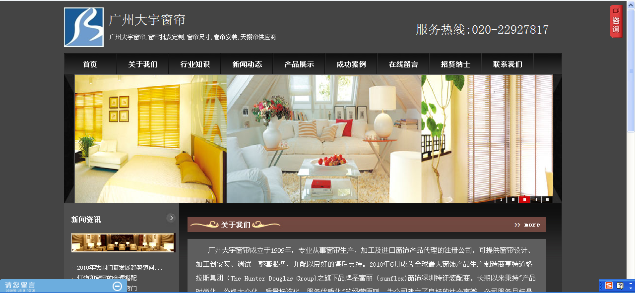 现我司声明:广州大宇窗帘或广州创宇窗帘、广州创宇窗帘有限公司及其法人何钊明、股东何创宇均与我公司无任何关联,其企业网站上所展示的公司商标、相关信息及工程案例均属非法盗用,该企业及其相关人员的任何行为均与我公司无关。