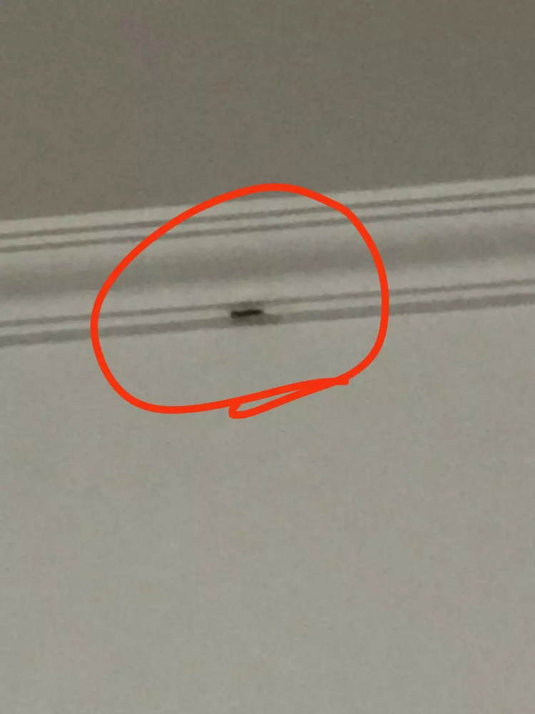 一条长了很多条腿的大虫子趴在天花板上,后经网友判断,应该是俗称为“草鞋底子”的多足虫,