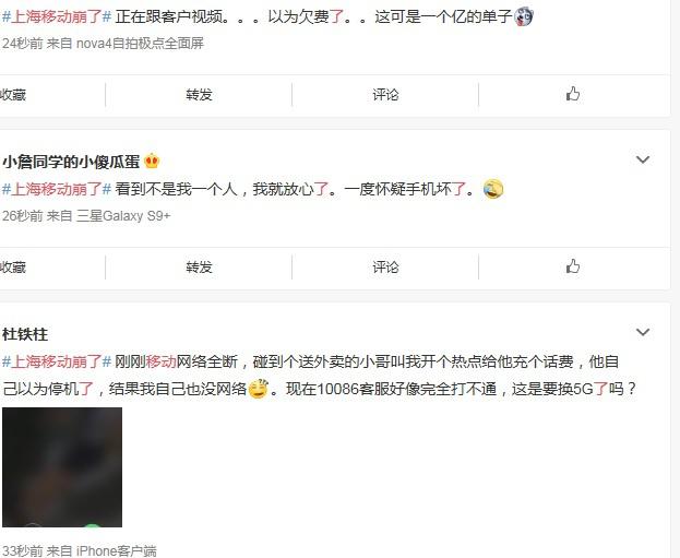 5月29日上午11时许,上海移动突然崩了。一时间,移动动不了,不仅4G网络无法接收,连打电话发短信这些基本技能都趋近于零。
